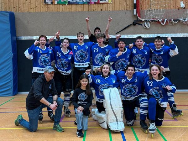 Plakat zum Inline-Skaterhockey Thunderhawks Cup der U16 & U13 mit Spiel der U10