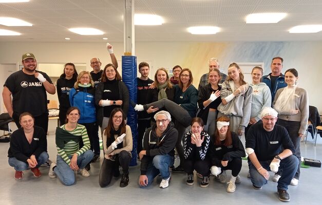 Gleich zu Beginn des neuen Jahres trafen sich 22 TSVler:innen im Treffpunkt, um sich für den Trainingsalltag fit zu machen. Das Rote Kreuz Gärtringen führte dabei auf sehr interessante und professionelle Weise durch den Tag. Auch bei vielen langjährigen Trainer:innen gab es immer wieder Aha-Erlebnisse - verändert sich doch trotz regelmäßiger Auffrischung so manches über die Jahre. Seien es neue Notrufnummern, eine Notruf-App, ein anderer Rhythmus bei den Wiederbelebungsmaßnahmen oder einfach auch nur veränderte Vorgaben. Und bei einem kleinen speziellen Exkursfür Maßnahmen zur Erstversorgung nach Sportverletzungen lernten alle Teilnehmer die P-E-C-H-Regel als eine Merkhilfe kennen.