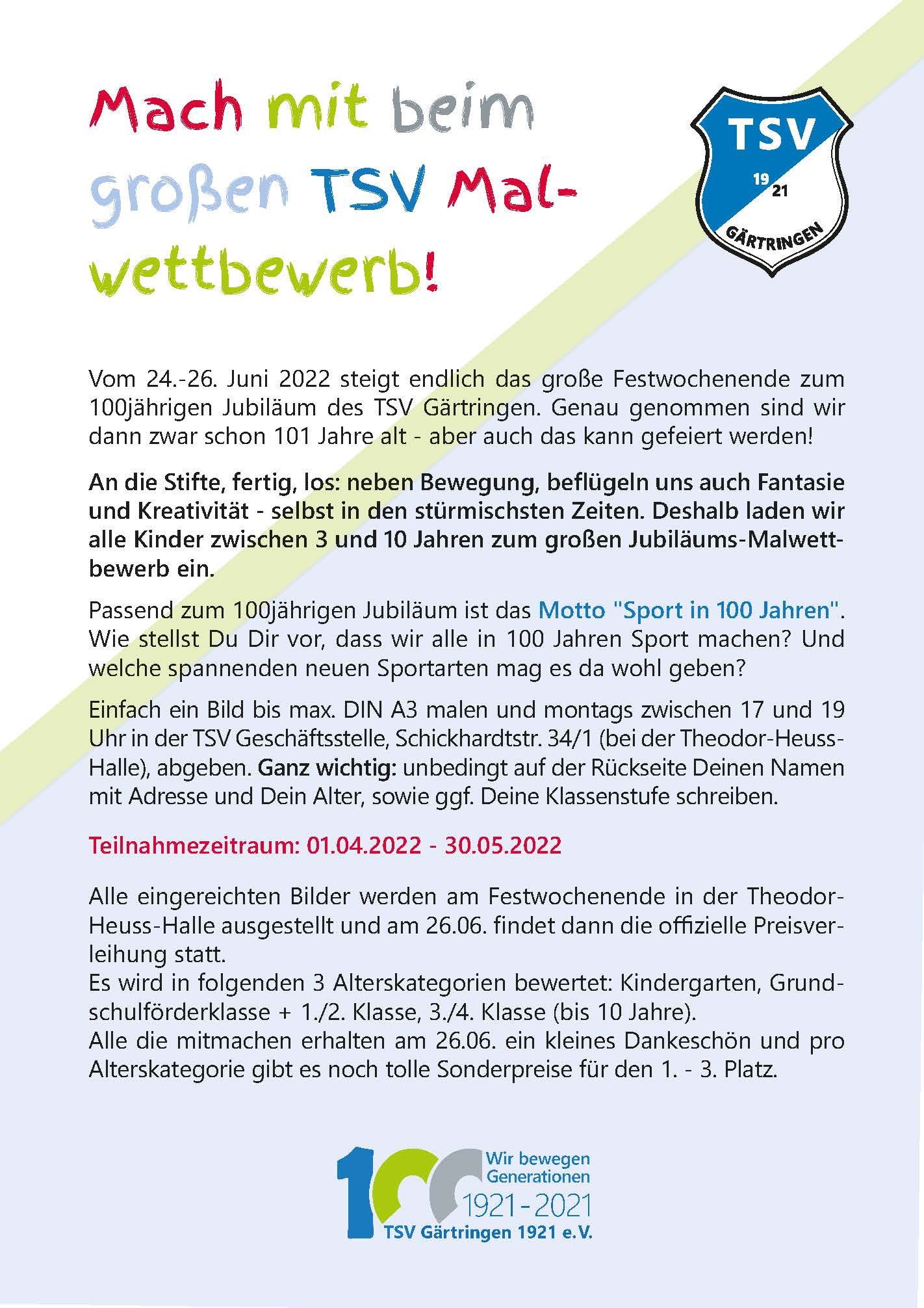 100. Geburtstag des TSV Gärtringen - mach mit beim großen TSV Malwettbewerb