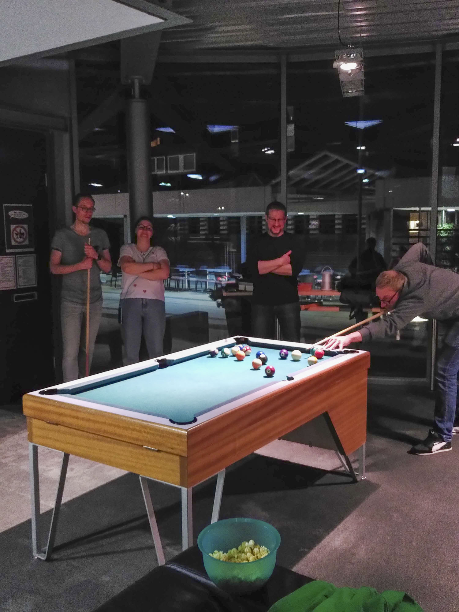 Nach dem Abendessen hatten wir in einem Freizeitraum die Möglichkeit, uns gegenseitig besser kennenzulernen, Billard & Tischkicker zu spielen und einen schönen Tag gemeinsam Revue passieren zu lassen. Das war ein gelungener Start ins "Wir-Gefühl"!