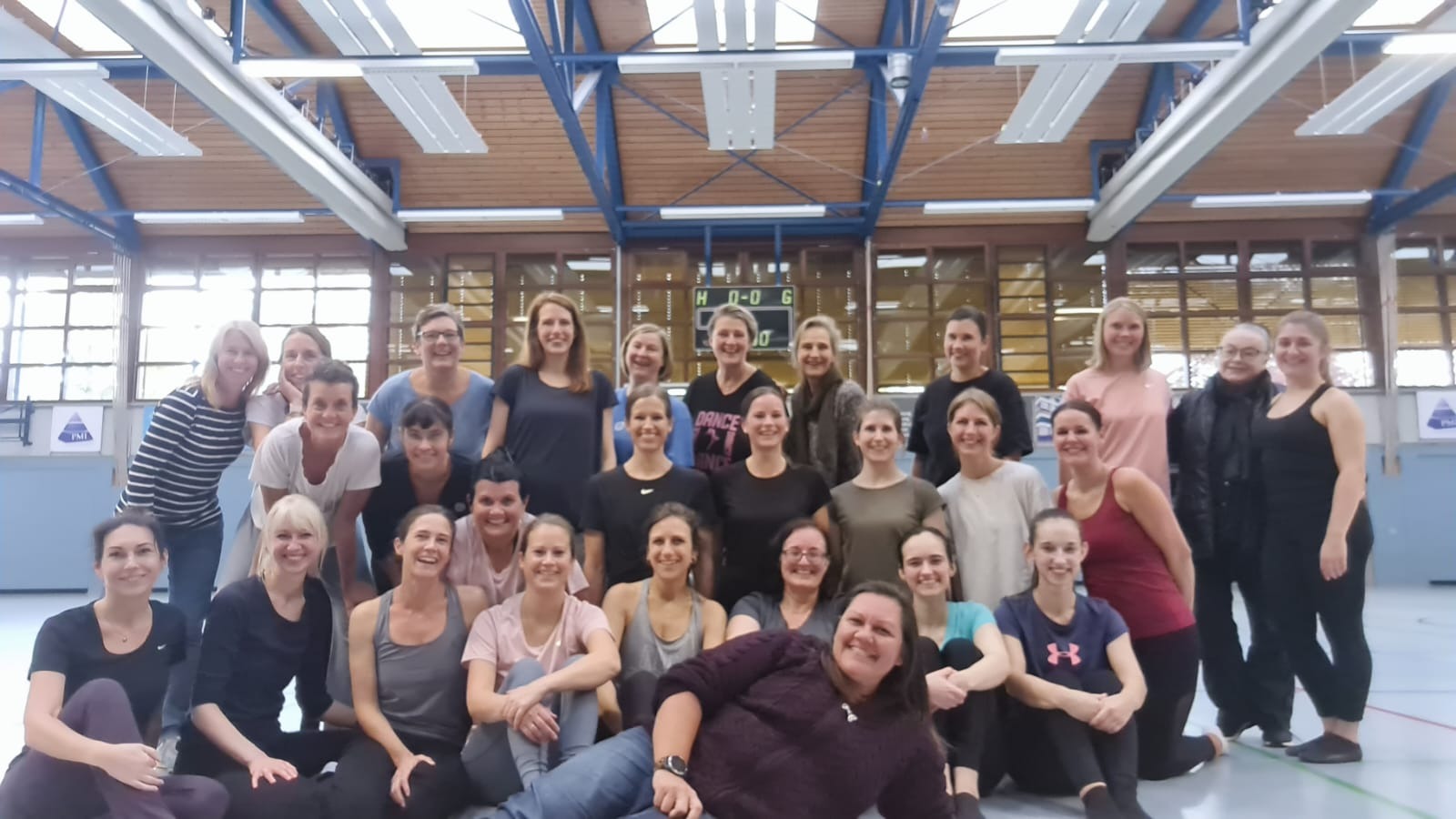 In einem 2-stündigen Workshop am 21.10. in der Theodor-Heuss-Halle floss Schweiß bei Warm-up, Technik und Choreo, die Rosi Alcauce mit Unterstützung von Kerstin Sandler vorbereitet hatte. Eine optimale Gelegenheit, um auch die vergangenen Verdienste von Rosi, den tänzerischen Aufbau der Abteilung, ihre Kreativität und ihr unermüdliches Engagement zu ehren. Auch das gemütliche Beisammensein im Anschluss durfte nicht fehlen, um herauszufinden, was sich in dem letzten Jahr(en), alles getan hatte.