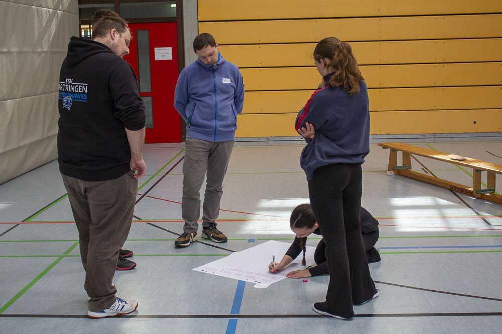 Der Weg dorthin war lang, aber jede investierte Stunde hat sich gelohnt. Schon 2022 fiel im TSV Ausschuss die Entscheidung, dass wir das Thema aktiv angehen wollen. Ein erster großer Schritt war die Sensibilisierungsveranstaltung mit Matthias Reinmann von der WSJ im März 2023, die uns wichtige Impulse gegeben hat. Im Juli 2023 ließ sich Sabrina zur Schutzbeauftragten qualifizieren, und im Oktober 2023 startete schließlich unsere Projektgruppe mit ihrem ersten Treffen. Seitdem treffen wir uns regelmäßig, um Maßnahmen zu entwickeln, die Kinder in unserem Verein schützen und stärken.