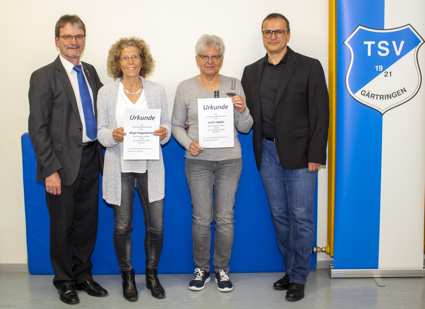 Nachdem der neugewählte TSV Präsident einen kurzen Impuls und Ausblick auf das aktuelle Jahr und darüber hinaus gegeben hatte, führte er gemeinsam mit Sitzungsleiter Gisbert Faubel durch die Ehrung langjähriger Mitglieder und Ehrenamtlicher: