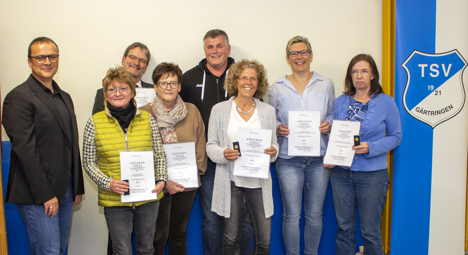 Sportkreis Ehrennadel in Gold: Eike Bühler, Gisbert Faubel, Gerlinde Fuhrmann, Birgit Hagenlocher, Silke Holzapfel, Susanna Mazura-Grohmann, Olaf Niemann, Uli Niemann, Martin Wisser, Sabine Wolf