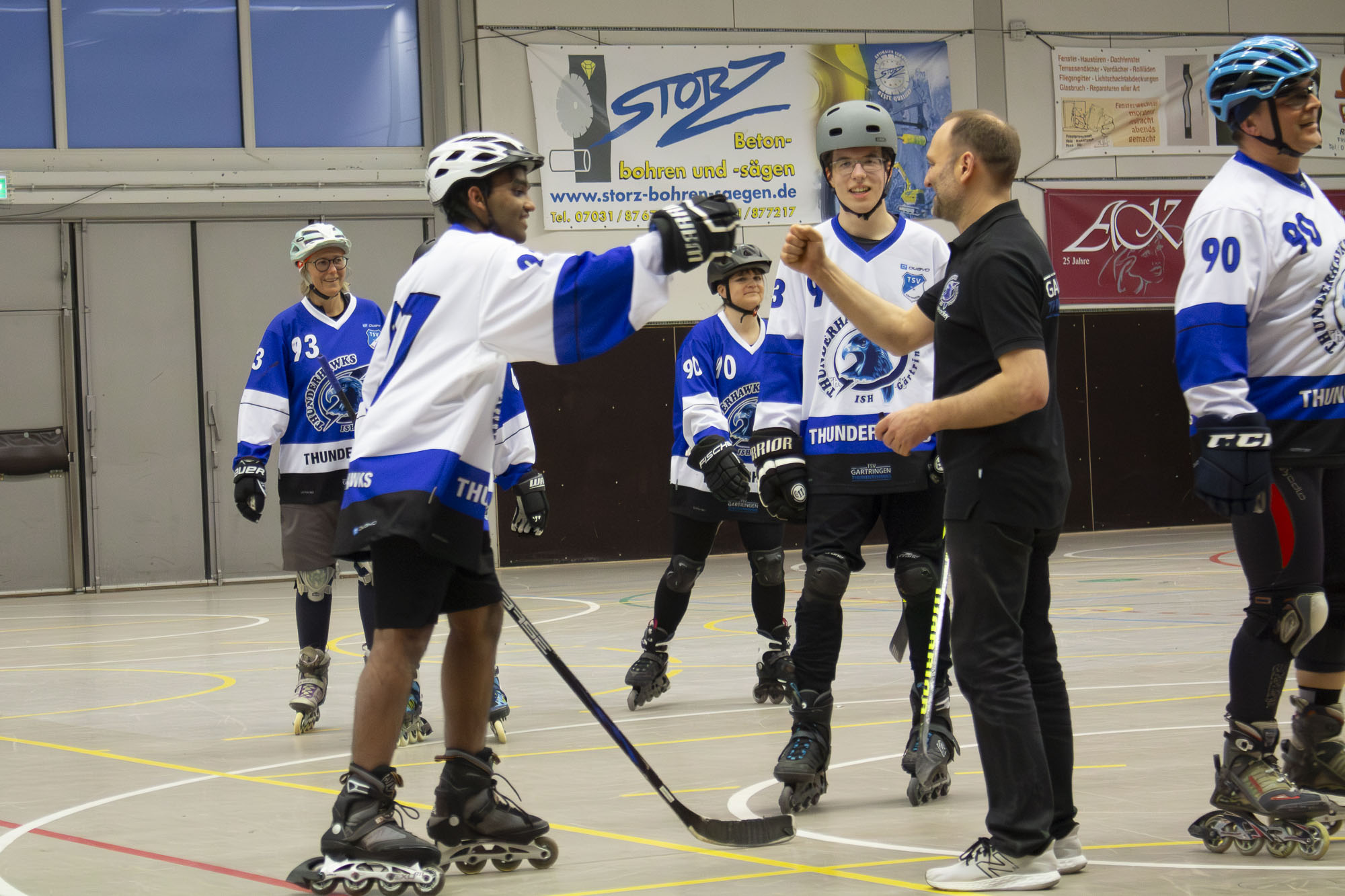 Am dritten Abend wurde es dann richtig spannend: Inline-Skaterhockey in der Schwarzwaldhalle. Anfangs noch etwas wackelig auf den Rollen, entwickelten sich schnell richtig gute Spielzüge – und der Spaßfaktor stieg von Minute zu Minute.